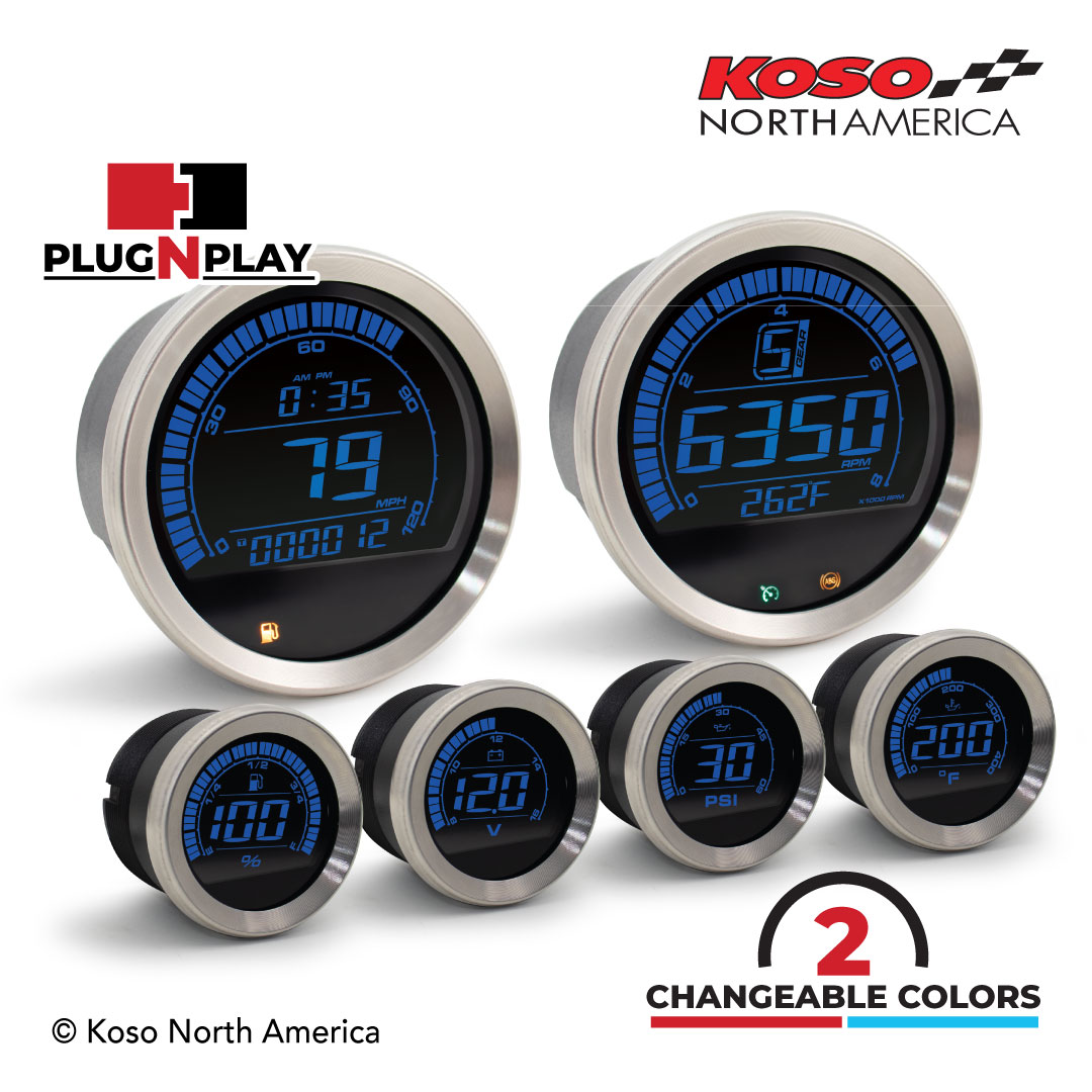 Our R&D department worked hard to create something new and modern for Harleys. The engineers responded by coming up with a complete plug & play system to replace the stock meters. No need to drill holes or to rewire the meters, they will all fit directly in the OEM dash and connectors. Both silver and black bezel kits feature a dual color changeable LCD display (red or blue) for a custom look. The 6 piece kit includes a 4’’ speedometer, 4’’ tachometer with gear position, 2’’ oil pressure meter, 2’’ fuel level meter, a 2’’ volt meter and the choice of a 2’’ ambient temperature meter or 2’’ oil temperature meter. This meter is a great addition to all Harley FLHT, FLHX, and FLTR from 2004 to 2013.